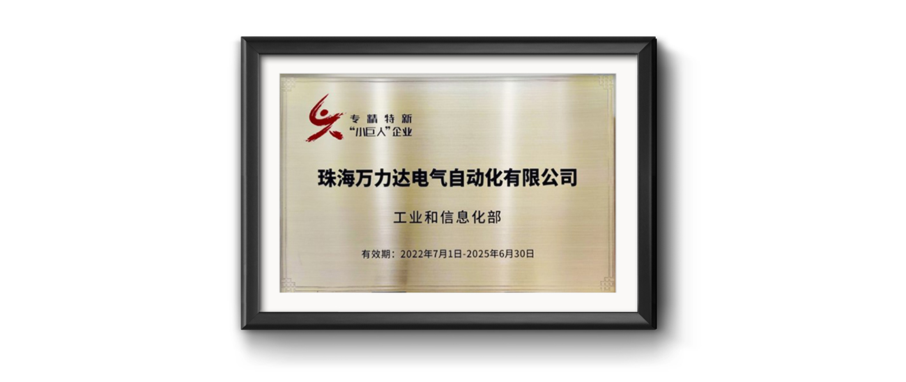 此次獲評國家級專精特新“小巨人”企業,是萬力達電氣自2020年獲得珠海市專精特新中小企業、2021年獲得省級專精特新中小企業后,再次摘得國家榮譽,成為萬力達電氣邁入加速發展階段的里程碑。
