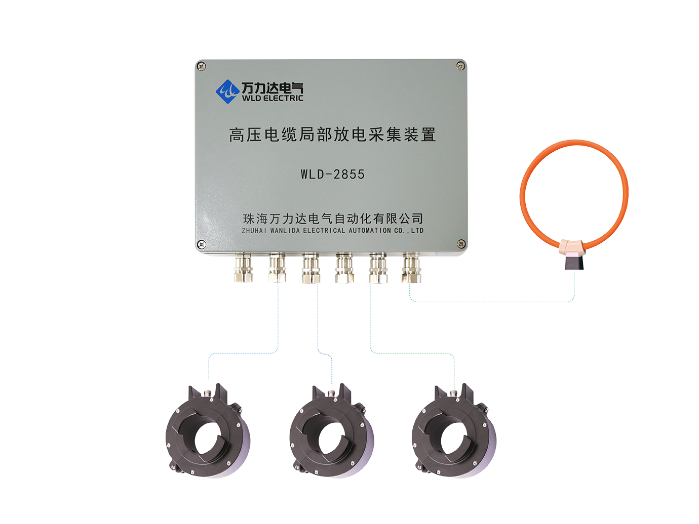 主要應用在6kV及以上的電壓等級高壓單芯電纜上,對其接頭部位局放電情況進行監測。