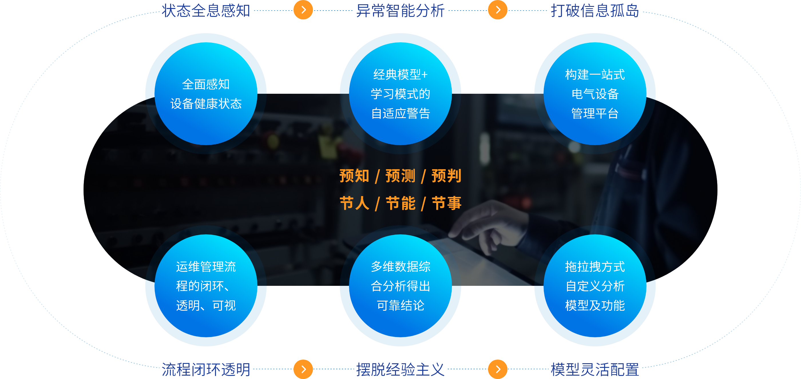 電氣智能化系統(tǒng)以工業(yè)互聯(lián)網(wǎng)平臺(tái)為基礎(chǔ),圍繞電氣設(shè)備的智能監(jiān)測(cè)、智能運(yùn)維、智能管理三大業(yè)務(wù)核心構(gòu)建的系統(tǒng),主要服務(wù)于工業(yè)企業(yè)的電氣運(yùn)維及管理人員,通過(guò)對(duì)電氣設(shè)備狀態(tài)的預(yù)知、預(yù)測(cè)、預(yù)判,實(shí)現(xiàn)節(jié)人、節(jié)能、節(jié)事、安全生產(chǎn)的目的,滿足工業(yè)企業(yè)數(shù)字化、智能化的建設(shè)需求。